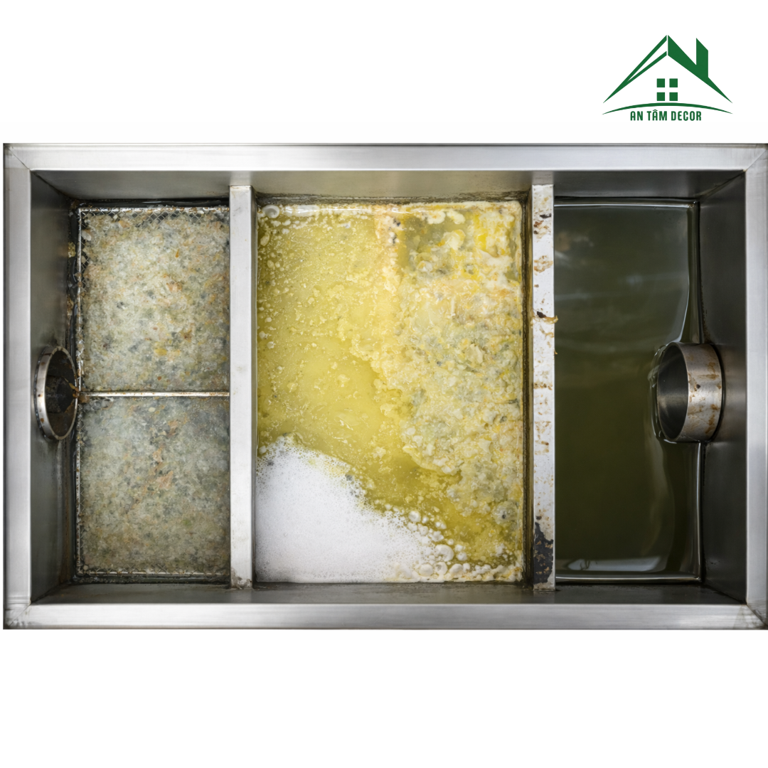 ⚙️ NGUYÊN LÝ HOẠT ĐỘNG BỂ TÁCH MỠ INOX AN TÂM DECOR