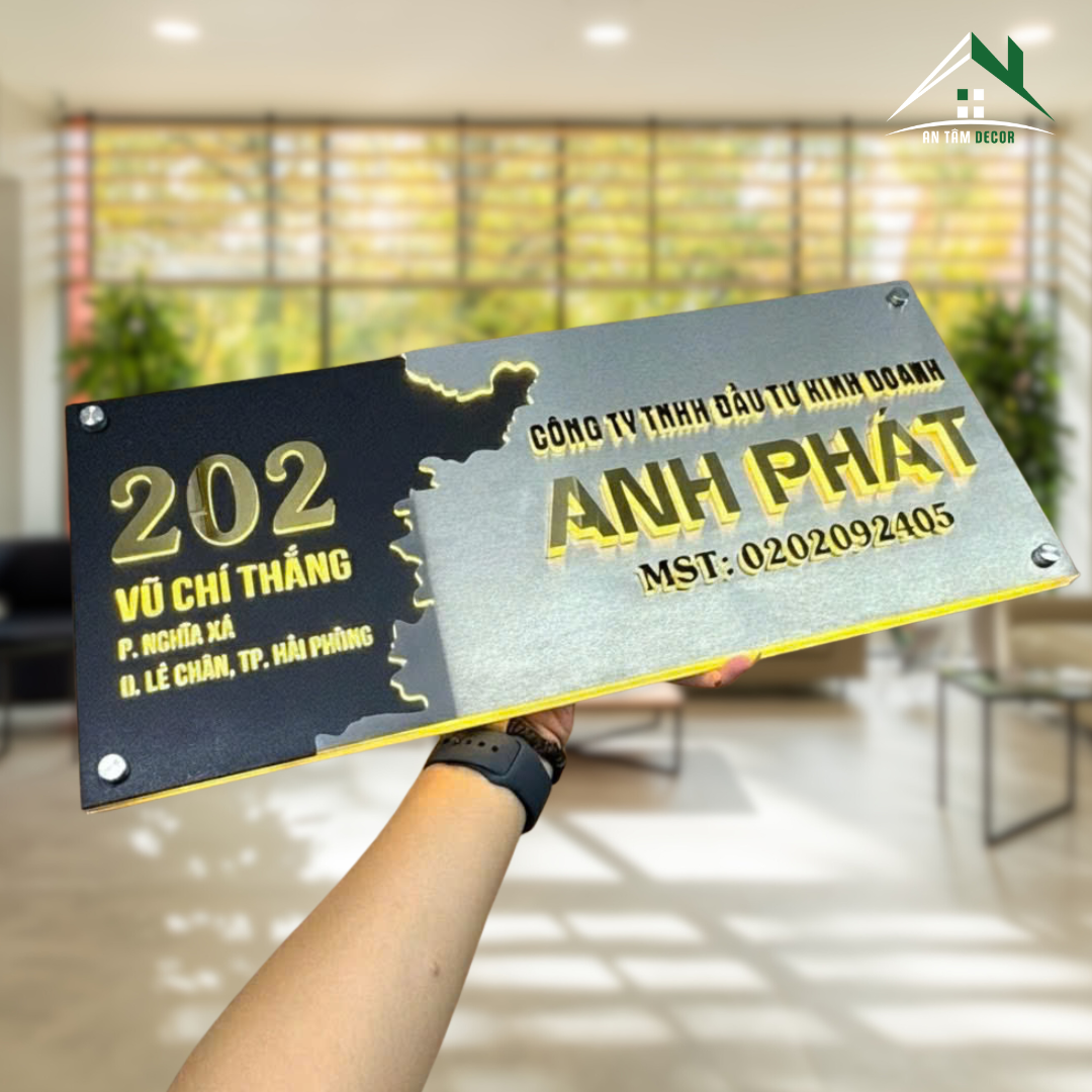 Chất liệu inox bền bỉ – chữ nổi 3D sắc nét – thiết kế chuẩn mực – phù hợp cả yêu cầu thẩm mỹ lẫn hồ sơ pháp lý của doanh nghiệp.