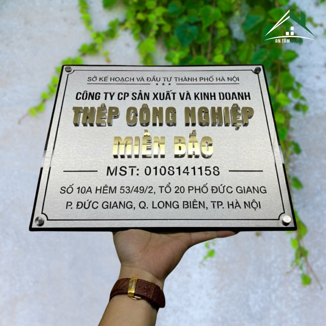 Sử dụng làm biển tên công ty, biển trụ sở, biển pháp nhân treo mặt tiền hoặc khu vực tiếp khách. Đáp ứng yêu cầu nhận diện thương hiệu và thông tin hành chính.