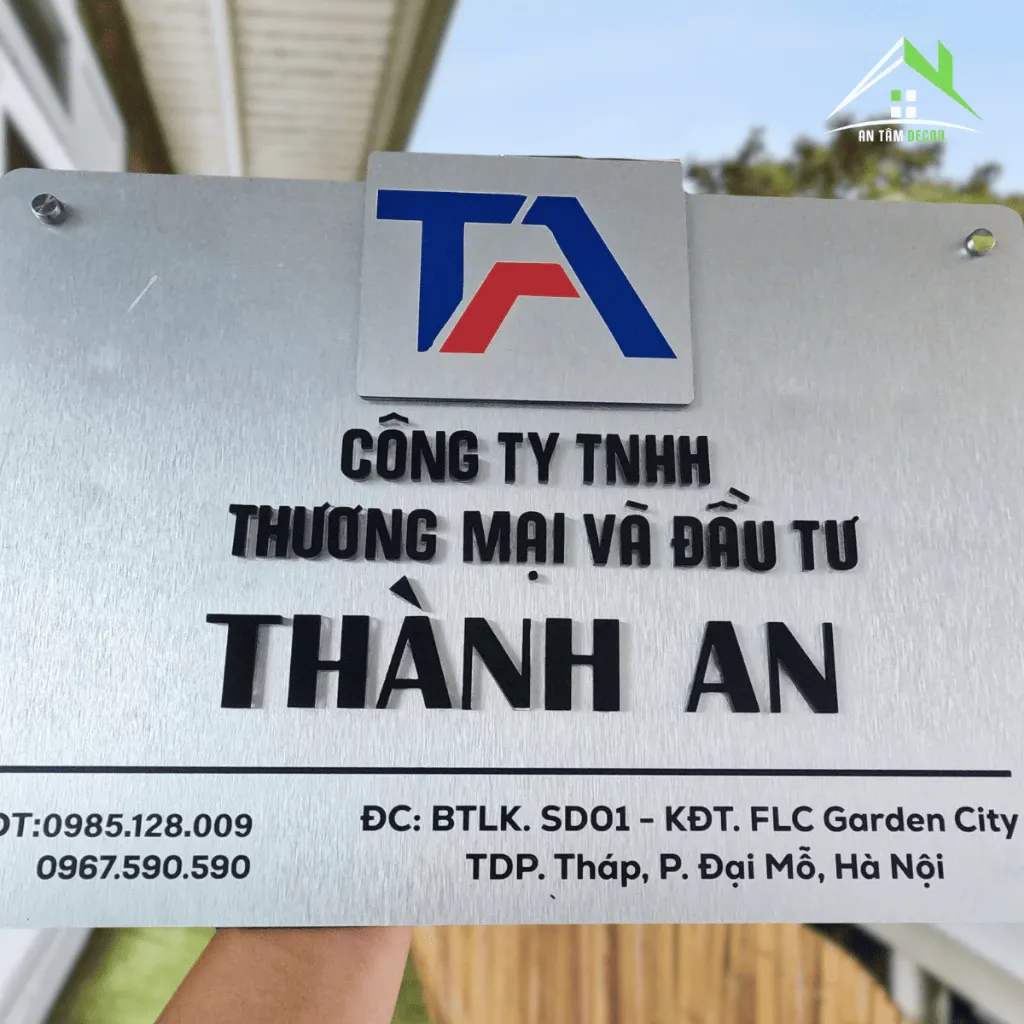 Thể hiện thông tin doanh nghiệp một cách rõ ràng, nâng cao hình ảnh thương hiệu khi gắn tại cửa công ty, lễ tân hoặc phòng giao dịch.