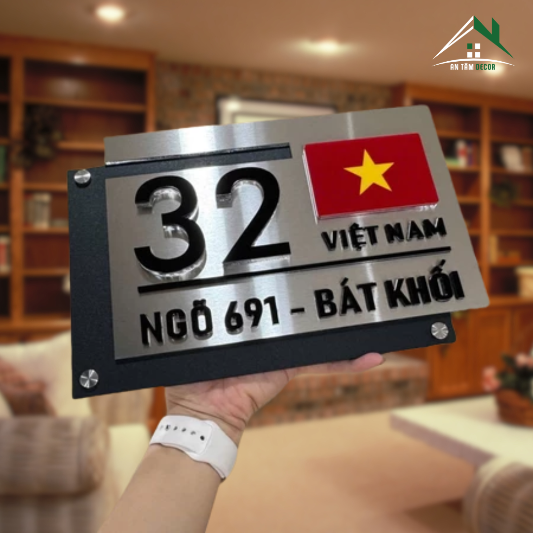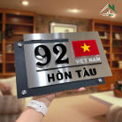 Biển Số Nhà 62 Bối House – Inox Bạc Xước + Mica Vàng Nổi – Mẫu Sang Trọng Kèm Cờ Việt Nam