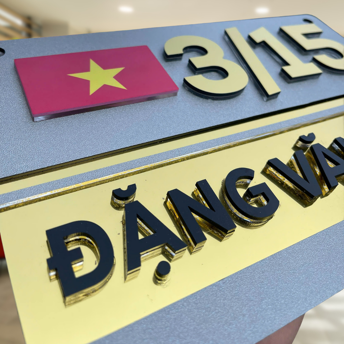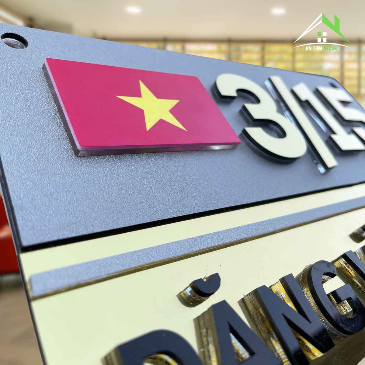 Biển Số Nhà Nền Vàng Gương – In Hình Lá Cờ Việt Nam – Dải Chữ Đen Sang Trọng