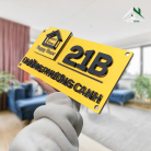 Thiết kế hình chữ nhật ngang, kích thước tùy chỉnh theo số nhà và không gian mặt tiền. Bo góc mềm mại, cân đối.