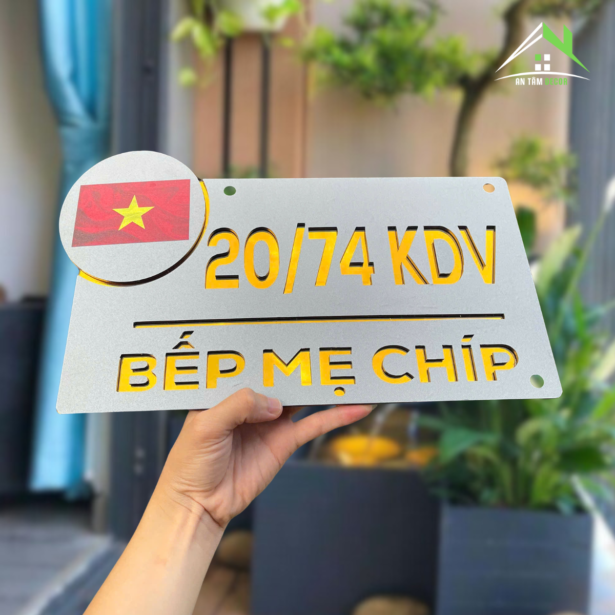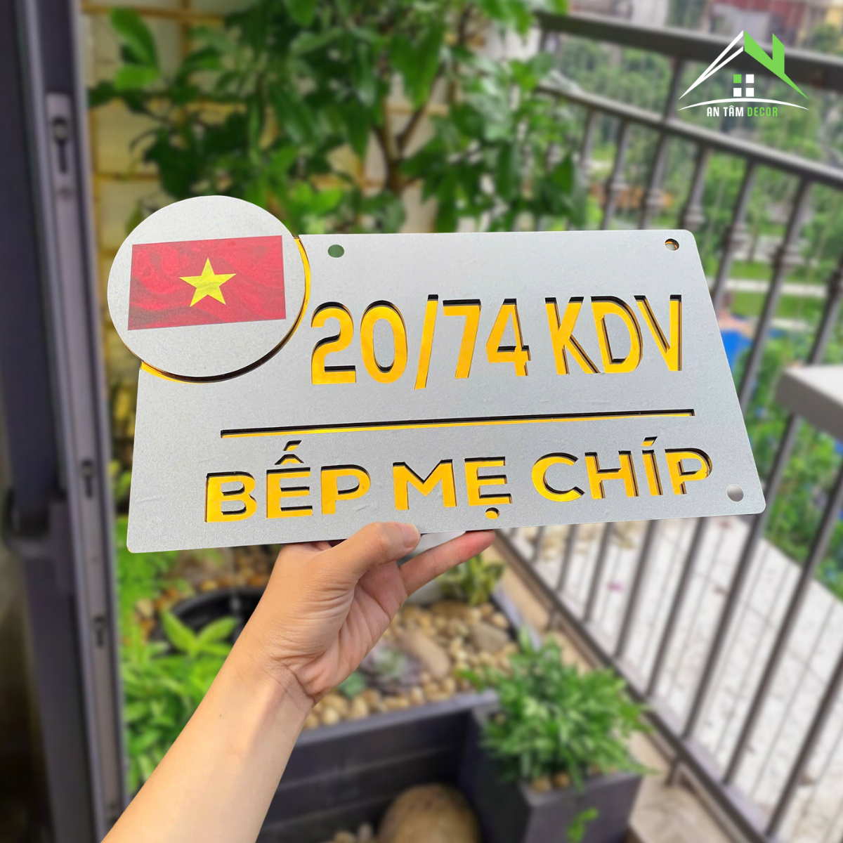 Biển Số Nhà Alu Gương Tím – Số Chìm – Cờ Việt Nam Nổi