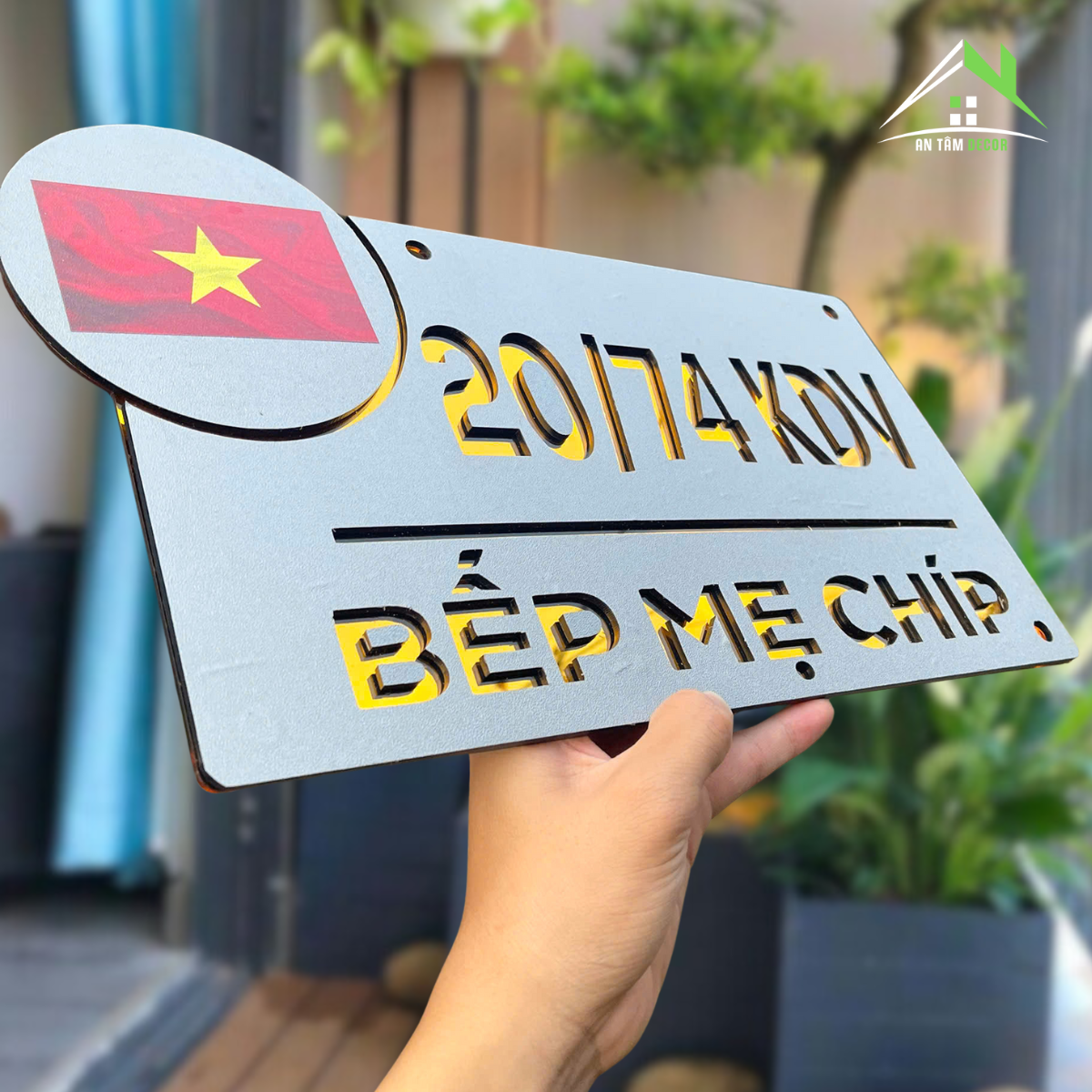 Biển Số Nhà Nền Xanh Dương – Cờ Việt Nam Nổi – Chữ Số Vàng Gương Nổi 10mm