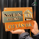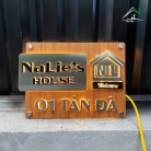 Phong cách hiện đại – tinh tế, kết hợp giữa kim loại inox và nền Alu sần vân gỗ. Chữ nổi 3D tạo hiệu ứng bóng đổ rõ nét, giúp biển số nhà dễ nhìn cả ban ngày lẫn ban đêm. Phù hợp với nhà phố, homestay, căn hộ, biệt thự hiện đại.