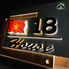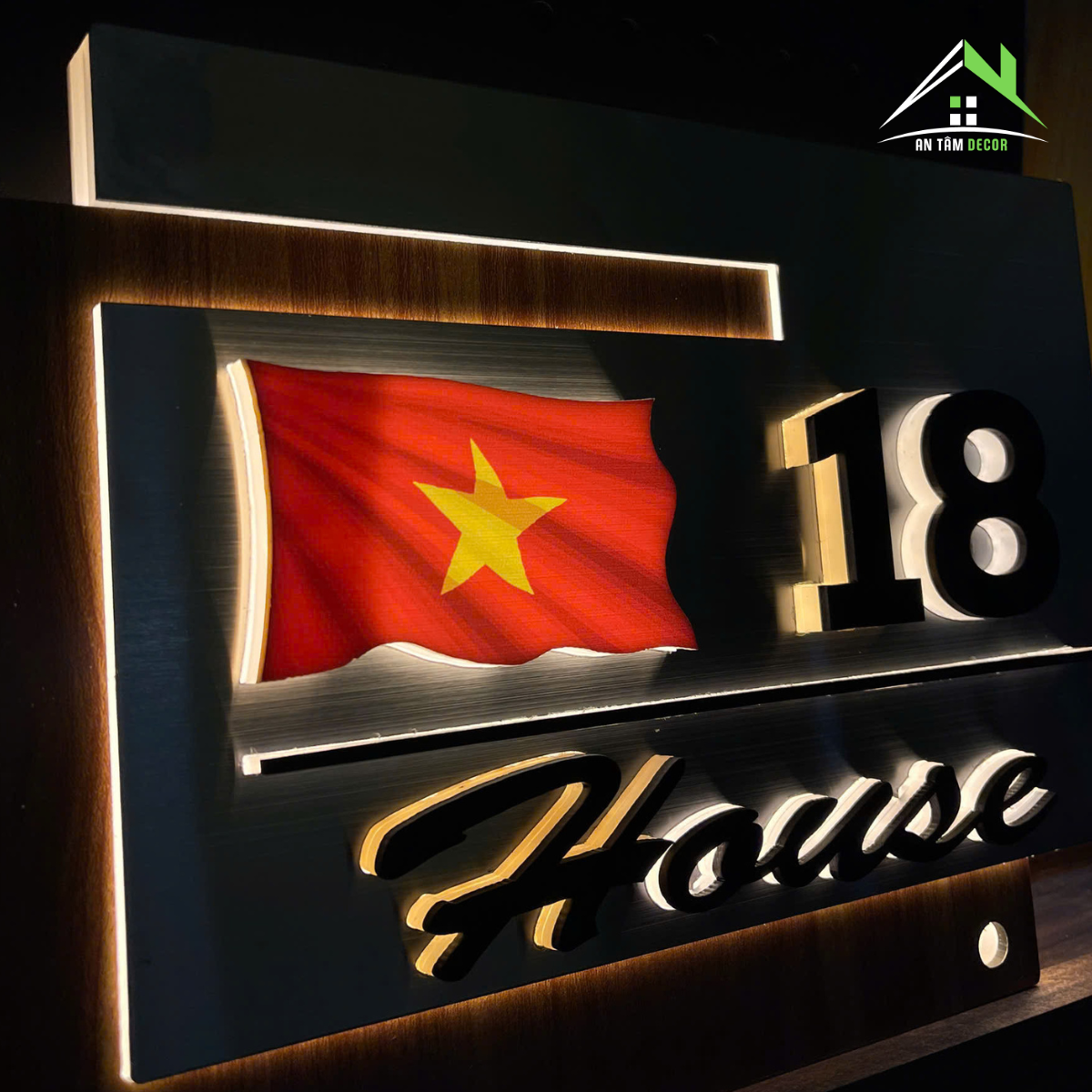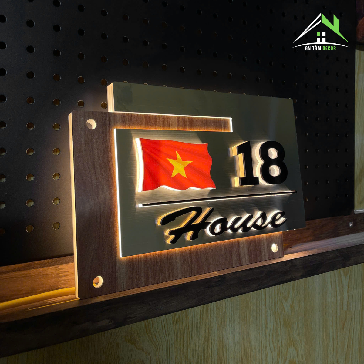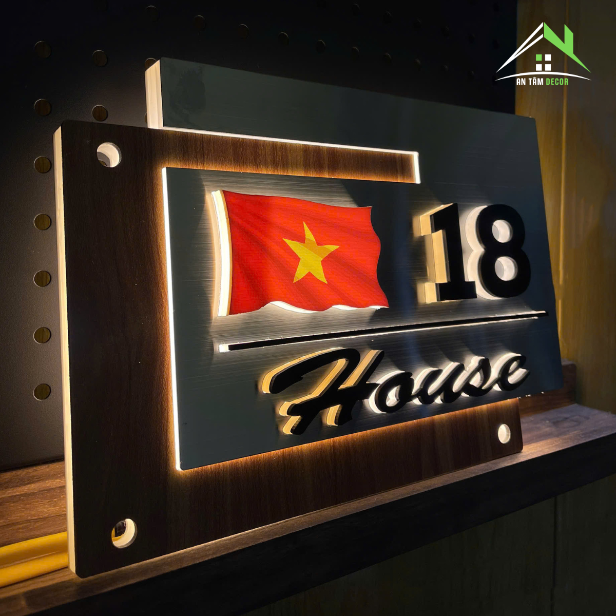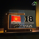 Biển Số Nhà Led Nền Vân Gỗ Hiện Đại Có Đèn LED – Quốc Kỳ Việt Nam Nổi Sang Trọng