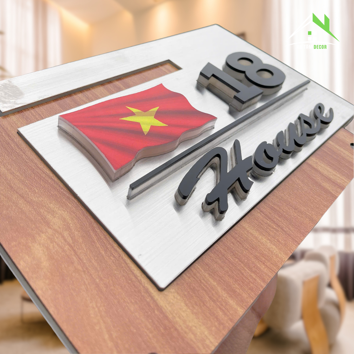 Biển Số Nhà In UV Họa Tiết – Cờ Việt Nam Nổi – Chất Liệu Xước Bạc Sang Trọng